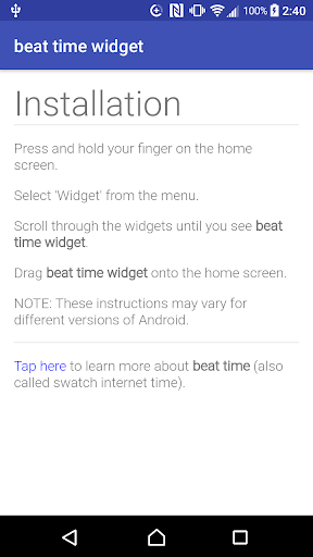 使用するには、アプリをダウンロードして、プラットフォーム上の他のウィジェットと同じようにビートタイムウィジェットをインストールします。