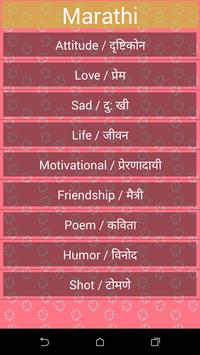 This App Contains latest hindi/English status & quotes and regional languages status of various categories as: