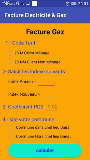 4. La valeur du coefficient PCS peut être modifiée pour calculer la facture de gaz en fonction de chaque wilaya.Vous pouvez trouver la valeur de PCS dans la facture SONELGAZ.