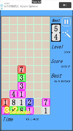 同じ色のブロックに書かれた数字を合計10以上にしたら消える落ち物パズルゲームです。