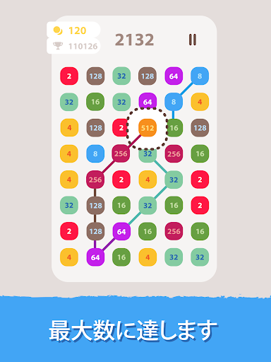 これは中毒性の数パズルゲームです。 この楽しい無料のナンバーブラストと数字ゲームで同じ数字をつないでポイントを獲得してください。 基数から始めます。 同じ数字またはその2倍の数字と組み合わせてください。 可能な限り長いリンクを作成します。 最高のタイルと最高のスコアに到達!