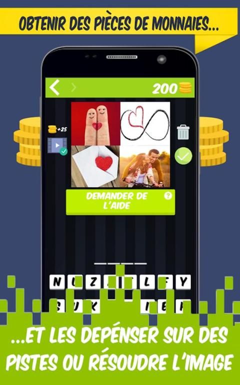 The big day has come, the best version of 4 images 1 word is here to bring you hours and hours of fun without limits. For you, your family and friends. Free game and completely French. So you can be hours and hours while you guess the word or Guess the countries or character. Within reach of all ages. 100% addictive and fun. With 4 images 1 French word you will not be able to stop playing for a second. And do not miss the details, because we have different categories, countries, animals, things of common use through food, words and so on. Hours of fun in the palm of your hand.