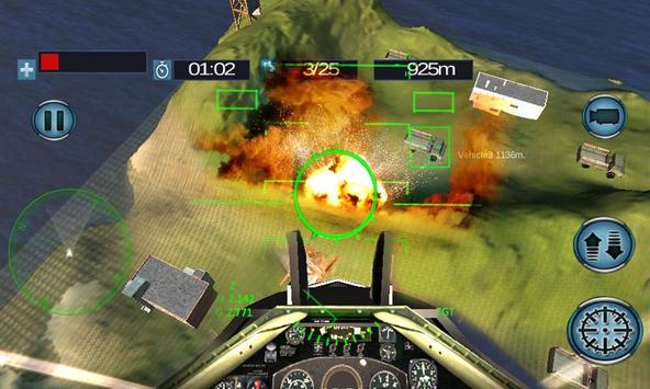 There are total five enemy army bases and ten missions to complete within a specified time limit. The pilot doesn't have much time for a perfect air attack to kill the enemy and destroy all ammunition and supplies.