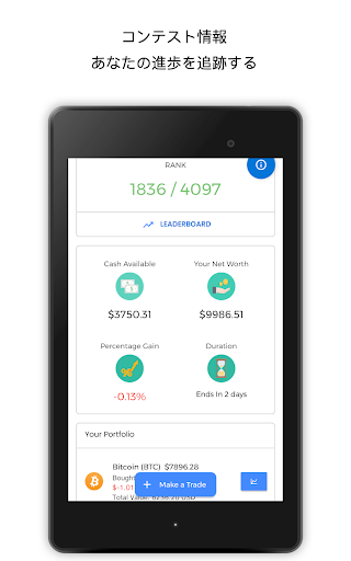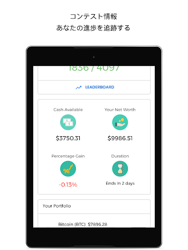 暗号通貨取引シミュレーターアプリでは、すべてのプレイヤーがファンタジーポートフォリオから開始し、仮想ポートフォリオを使用して暗号通貨(ビットコインやアルトコインを含む)の取引を開始できます。