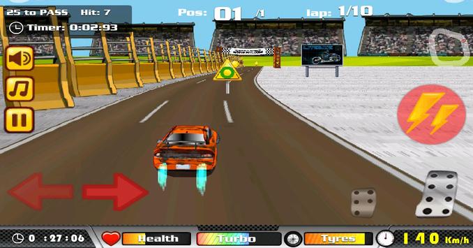 Race yourself through these 40 fantastic levels ranging from straight up racing to being required to knock down obstacles to progress further. The game itself is set in packed out stadium full of people ready to watch you perform. Travel across the levels and create the perfect draft and over-take in style. Pull off some amazing stunt overtakes without crashing into the back of other cars! Watch your health and your tyres! As your top speed will be limited the more you crash!