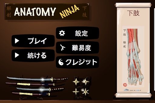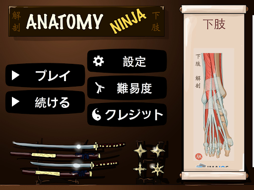 Anatomy Ninjaは解剖学のゲームです。医用イラストや3D画像、X線・CT・MRI画像をもとに製作されました。初心者から上級者の方まで、楽しく下肢解剖の知識を身に付けていただけます。