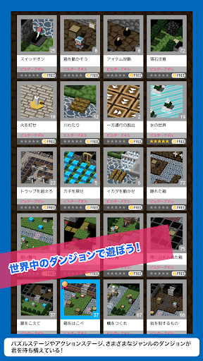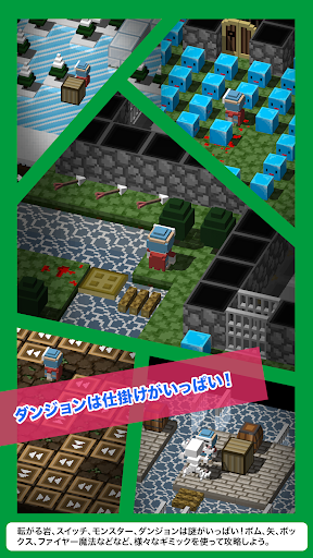 秘密の扉や迫り来る岩石、手強いモンスターたちを倒してレベルアップ!ボックスの謎を解いて先へ進め!こんなギミックたっぷりの自分でつくったダンジョンを世界中にシェアすることができます!