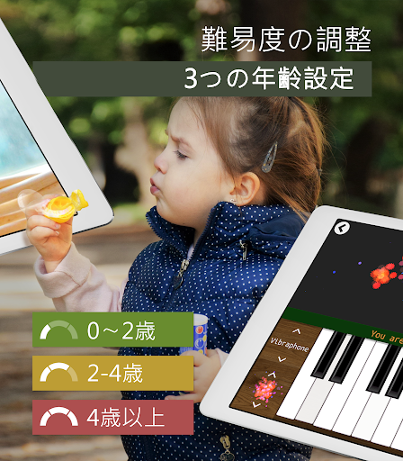 難易度と年齢設定を変えることでお子さんもアプリと共に成長し、ゲームが退屈になってきたら難易度を上げて新しいチャレンジを用意することも可能です。また、設定を変えることで 年の離れた複数の子供達が一つのアプリで遊ぶことができます。