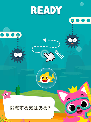 - ちびザメをタップし、障害物を避けて泳げるようにしてあげましょう!