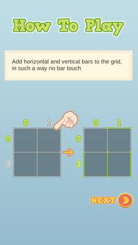 Tap to add horizontal and vertical bars to the grid - each 1 unit in length - in such a way no bars touch.