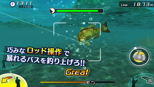 バスの動きに合わせて直感的にロッド操作を行い、ベストなタイミングでリールを巻き続けよう!