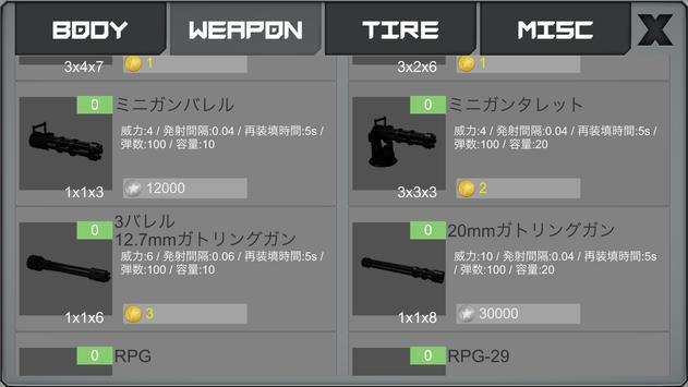 3D空間内で車体ブロックや武器などのパーツを自由に組み合わせてオリジナルの自由な武装車(工夫次第でロボットや戦車も)を組み立てるサンドボックス(箱庭)コンバットアクションゲームです。