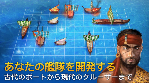 ・スクリーンをタップして、波間に船の旅のテーマを選びます。ドラッグとドロップして、バトルシップを並びます。あなたの番のとき、グリッドに的を選ぶためにスクリーンをタップします。