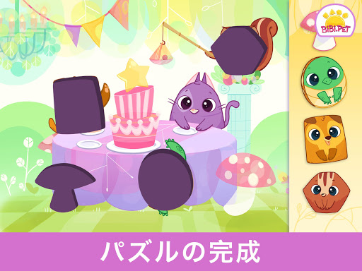 この どうぶつたちと いっしょに いろや かたちを おぼえたり、パズルや ゲームで あそんでね。