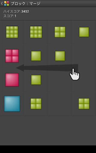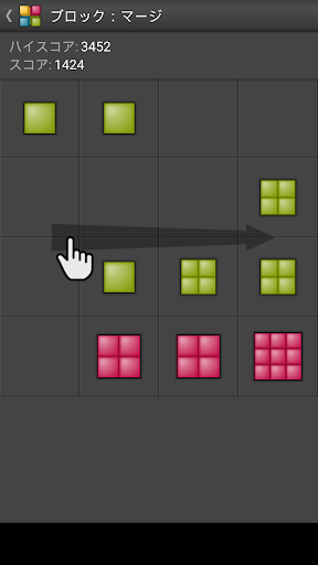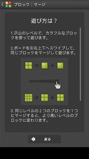 - 上下左右にボードをスワイプして、同じ色やレベルのブロックをマージして遊びます。