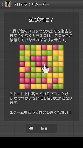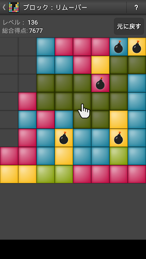 ゲームでは何をすれば良いの?それはとても簡単:ボード全体を消去すれば良いだけです。だけどご注意...頭を使って遊んでください - ブロックは、同じ色を3つ以上集めると消すことができます。チャンスは一度だけです。慎重に選んで遊びましょう。
