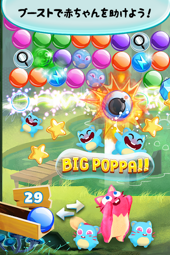 - レインボーバブルとボムバブルでパワーアップ!- 爆発するライトニングバブルといった、おじゃまモノをうまく扱おう!- 絶対気に入るキュートなアニメーションに楽しいミュージック!- 二つの操作方法 - 自分に合ったものを選べる!