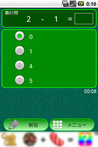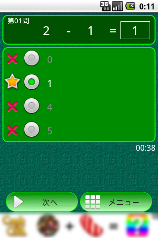 計算式の1文字が空欄になります、4択の中から正解を選んでください