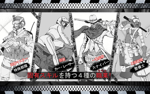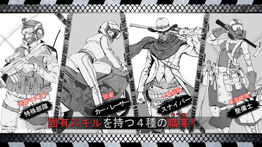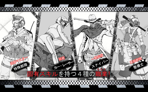 ・ゲーム開始直前にプレイヤーは特殊部隊/カー・レーサー/スナイパー/整備士の4つの職業から1つを選択し、戦闘地域に入場します。(職業ごとに固有のスキルや特性があります。)