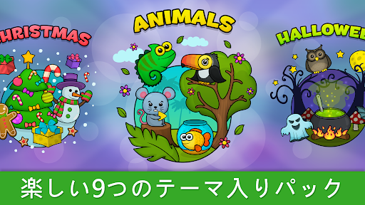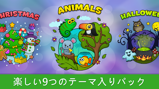 キッズパズルは1歳から5歳までのキッズと幼児向けの教育ゲームです。細かな運動能力、注意力、コーディネーション力、視覚認知能力といった、基本的スキルの発達を手助けします。キッズパズルはただの子供向けパズルゲームではありません。それぞれのレベルに、点つなぎ、子供ぬりえ、赤ちゃんパズルの3つの幼児向けアクティビティがあります。パズルを組み立てると、未就園児が必ず喜ぶかわいいアニメーションが流れます。