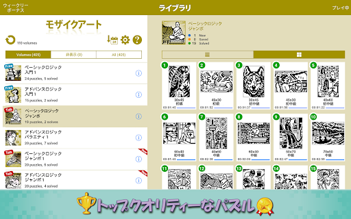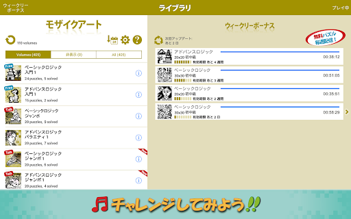 更に、モザイクアートでは毎週更新されるボーナス無料!パズルで遊べます。