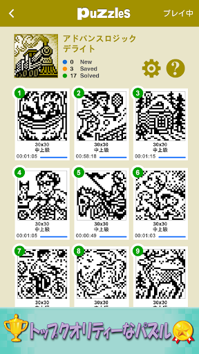 パズルリスト画面には、過去に解いたパズルの履歴が見れる画像が追加されました。ギャラリービューオプションではラージフォーマットで履歴を見ることができます。