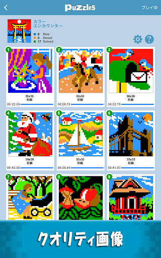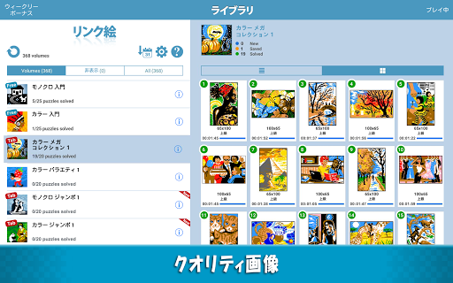 パズルリスト画面には、過去に解いたパズルの履歴が見れる画像が追加されました。ギャラリービューオプションではラージフォーマットで履歴を見ることができます。
