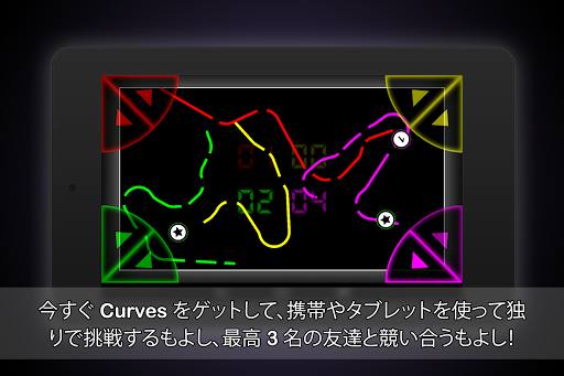 パーティー会場で、講義中に、学校で…とにかくどこでも、最高 3 人までの友達と Curves で遊べるよ! Curves はすごいゲームなのにシンプル: 他プレイヤーの邪魔をして障害物を避けながら、できるだけ長い間生き残ってね。