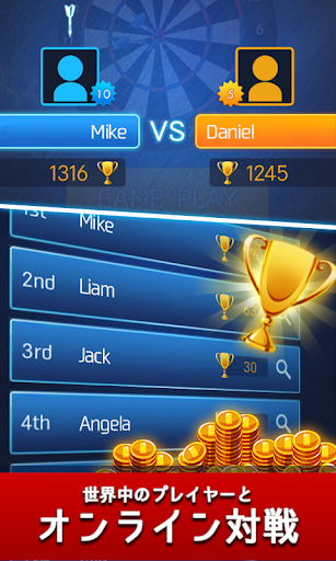 - ランキング機能:世界中のダーツプレイヤーと競う合うワールドランキング機能です。