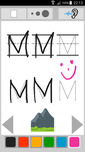 Trace a letter (ABC upper or lower case) while seeing a picture starting with that letter and hearing the pronunciation - learn in 3 ways at once for effective learning.