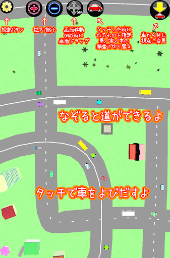 お絵描き感覚で画面をなぞると道ができて、画面タップで車を呼んだり、家や木を建てたり。