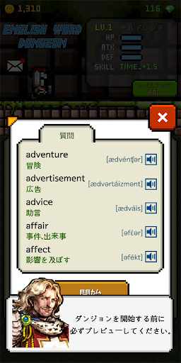 「English Dungeon」は、プレイ中に英単語を読む能力を高めます。