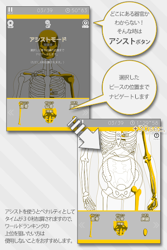 人体の内臓と骨格をジグソーパズル感覚で覚えることができる教育系ゲームです。楽しく軽快に遊べることを重視して作りました。