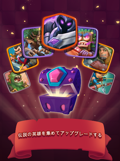 ● カードの入った宝箱を開き、強力な新ヒーローやモンスターのタイルを集め、自分のデッキをアップグレード