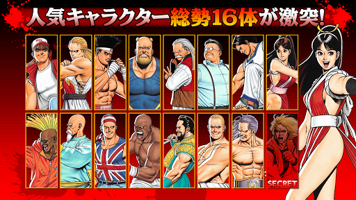 「テリー」「アンディ」「ジョー」の主人公に加え、「不知火舞」「ギース」「クラウザー」など人気キャラクターたちが参戦。さらに本アプリでは、隠しキャラクターの「リョウ・サカザキ」が常時使用可能!