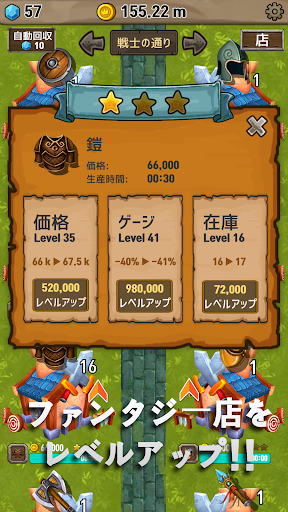 食べ物の通り、戦士の通り、ウィザードの通りで、様々なお店をオープンして、アイテムをアップグレードすることができます。