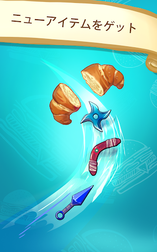 “ヘラ”や”ヌンチャク”等色々な武器のロックを解除して、ピザやハンバーガー、お寿司etc世界の色んな食べ物をスライス/スマッシュしながらゲームを進めていきます。