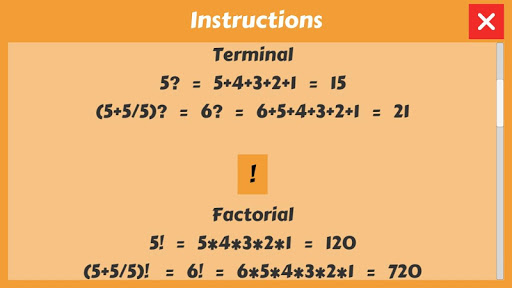 階乗と終末の概念、および括弧を使用して、数式の一部に優先順位を付けることもできます。