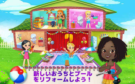 > 毎日新しいおうちとプールをリフォームしよう!それぞれのおうちは本物のリフォームアクティビティでいっぱい!