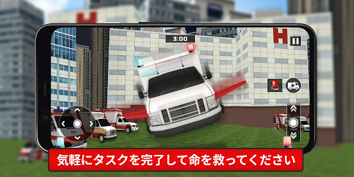 このアプリは他のドライビングシミュレーターとは異なります!その特徴は、救急車が乗るだけでなく、飛ぶこともできるという事実にあります。これにより、崩壊した橋、道路の穴、瓦礫などのさまざまな障害を克服することができます。簡単に飛び回れるので、渋滞に巻き込まれることもありません!