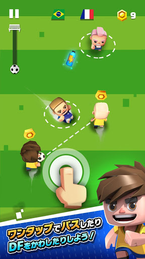・直感的なラクラク操作!ワンタップでパスやシュートが可能!ディフェンダーだってかわせちゃう!