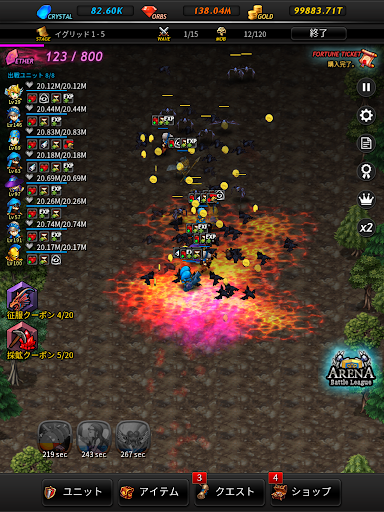 7。シングルプレーで成長させたユニッを活かしアリーナバトルリーグに参加して世界のユーザーらと戦術戦略を競い合います。