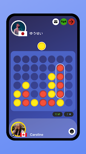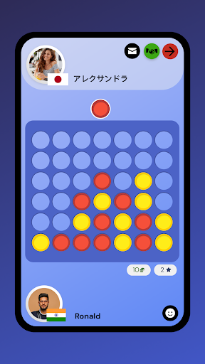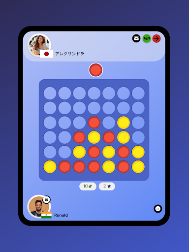 オンラインボードゲームをプレイしてスコアを競いたいと思いませんか?お任せください。戦略オンラインゲーム、コネクト4を同じようにプレイする世界中のプレイヤーを相手に1対1でプレイできます。オンラインマルチプレイヤーゲームを友達と、または世界中のプレイヤーと一緒に楽しみましょう。コミュニティに参加して、ボードゲーム中に対戦相手に絵文字を送信したり、4つのコマを並べてレベルアップを目指し、スコアを競いましょう。ログインは不要です。アプリをダウンロードするだけで、戦略ゲームで脳を訓練する準備は万全です。友達、そして同じようにコマとマスを並べて4目並べを楽しむ世界中のプレイヤーとマルチプレイヤーゲームで対戦しましょう。