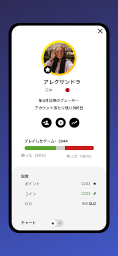 自分のELO、獲得コイン、ゲーム統計を他の4目並べのプレイヤーと比べましょう。ルールが〇✕ゲームとほぼ同じくらいシンプルとはいえ、コネクト4のオンラインとオフラインボードゲームはスコアを破るために他の戦略ゲームよりもより良いアプローチを必要とします。自分で確かめてみてください。友達に挑戦し、レベルアップしてハイスコアを獲得しましょう。