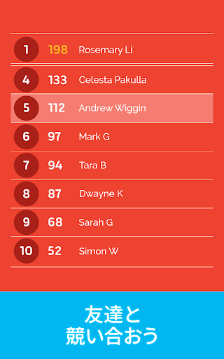 - スコアを比較して競い合えるランキング機能。
