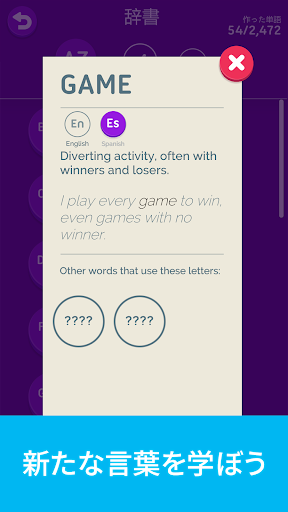 - 英語とスペイン語を切り替え、両方の言語から単語を作ることを選択可能。