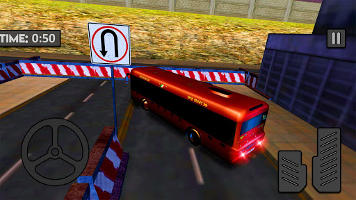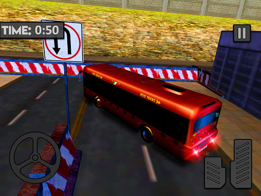 you have given different level. Each level is different from other level and more interesting .You have to clear the level by following the driving instructions given in the game .If u left one part of instruction the level did not complete you have to replay the level and follow the instructions again .When you start the game 2 option given you (Start engine) (Fasten the seat Belt).Firstly you have to start the engine and then fasten the belt .On the right side two pedals are available one is for break and the other 1 is for race. On right side steering given to move the bus left or right.Simulator bus parking is a driving skill game .In which you followed the driving instructions to complete the level.