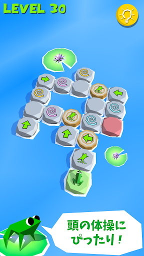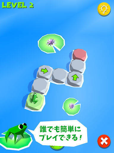 ‐ 岩に指示を置き、カエルがその指示に従い移動。全ての岩を通りゴールに着いたらクリア