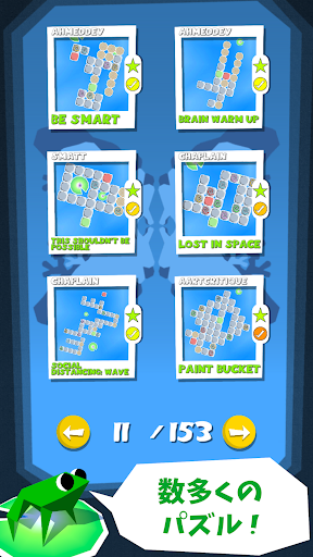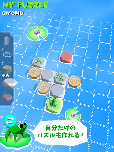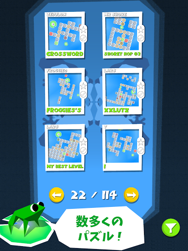 フロッグ・パズルは一人で作ったパズルゲームです。最初は簡単ですが進めば進むほど難易度が上がりますのでチャレンジたっぷり入っているゲームです。