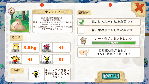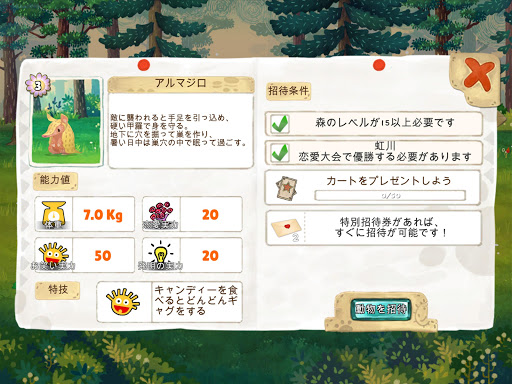 森の主のナルの教えに従って、動物たちとの日常を楽しんでください。